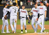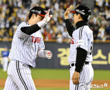 염경엽 감독 '하이파이브 하느라 바쁘네'[포토]