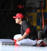 비 내리는 잠실, 더그아웃의 KIA 브룩스 '경기 열릴까?'[엑's 스케치]