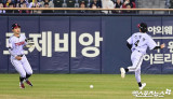 박해민-신민재 '공은 어디에'[포토]