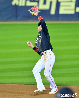 하주석 ‘확실한 콜 사인 후 캐치’[포토]