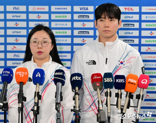 훈련 전 인터뷰하는 김선영-정영석[포토]