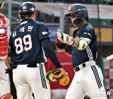 박찬호 ‘두산 첫 홈런이라 무관심 세리머니’[포토]