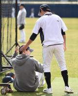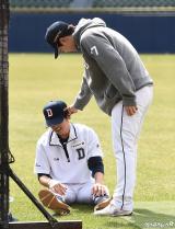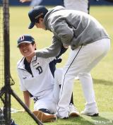 정수빈 '박건우 향해 애정 어린(?) 손길'[포토]