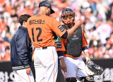 최재훈 ‘에르난데스를 진정시키며’[포토]