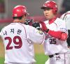 이범호 '(김)진우에게 승리 선물해야지'[포토]