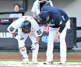 문현빈 ‘파울 타구에 맞았어’[포토]