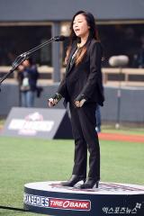 노사연 '한국시리즈 4차전 애국가 불렀어요'[포토]