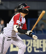 김인태 '포크볼에 당했다'[포토]
