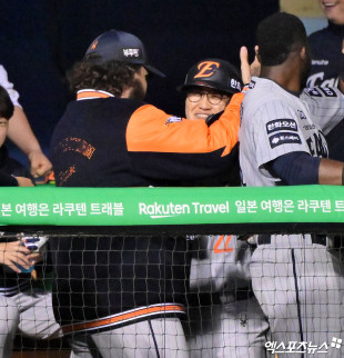 김경문 감독 '채은성에게 감사 인사'[포토]