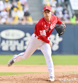김민준 ‘베이스 직접 밟으며 이닝 종료’[포토]