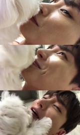 "당했다" 이특, 반려견 '심쿵이' 키스 세례에 당황 (ft.눈웃음)