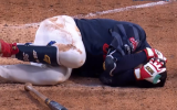 슬라이더에 머리 강타…롯데 이호준, 헤드샷 부상 교체→병원 검진 예정 [수원 라이브]