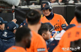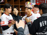 김재환 '홈런치고 피자먹방 세리머니'[포토]