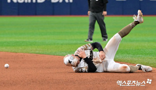 송지후 ‘수비 과정에서 어깨 통증이’[포토]