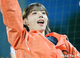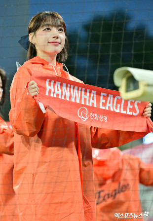 하지원 치어리더 ‘주황색 우의를 입고’[엑's HD포토]