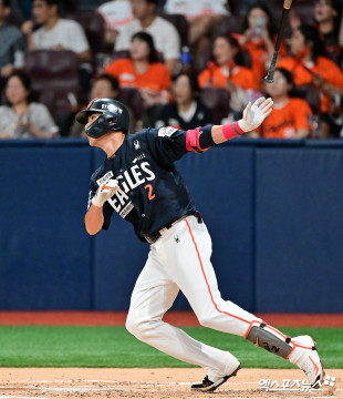 심우준 ‘우중간을 갈랐다 생각했는데’[포토]