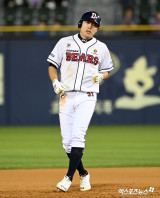 다이빙캐치 시도한 허경민 '얼굴에 고통이 그대로'[포토]