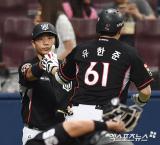 윤석민 '유한준의 축하를 받고'[포토]