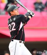 최형우 '안치홍 홈런에 미소로 축하'[포토]
