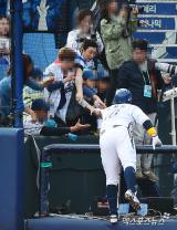 박석민 '홈런날리고 팬서비스도 확실하게'[포토]