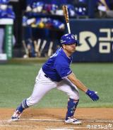 강민호 '한 손 놓으면서 타격'[포토]