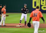 정은원-황재균 '충돌할 뻔 했어'[포토]