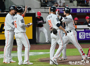 최재훈 ‘대투수 상대로 스리런’[포토]