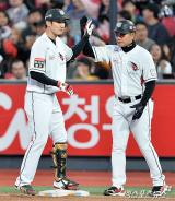 김진욱 감독 '김사연과 하이파이브'[포토]