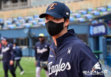 엄상백 '먼지가 많아 마스크 착용'[포토]