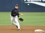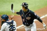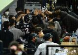 김재호 '양의지에게 홈런 친 배트를 건네받고'[포토]