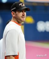 한용덕 감독 '호잉과 대화'[포토]