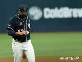 박세혁 '알칸타라와 이야기 나누며'[포토]