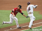 포구 실책 저지르는 노경은 '마음이 급해'[포토]