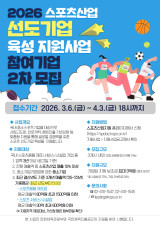 2026 스포츠산업 선도기업 육성 지원 사업 참여기업 '2차 모집'…4월3일까지 온라인 접수→3개 내외 선도기업 추가 선정