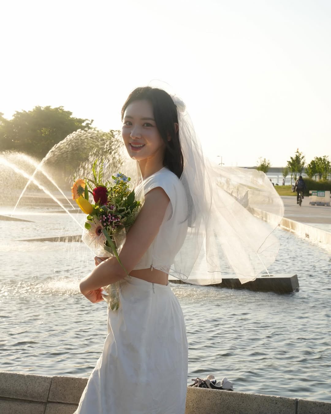 '배성재♥' 김다영, 결혼식 생략→한강서 흰 드레스 입고 등장..."영락 없는 신부"