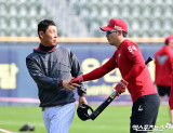 김정준 코치 '최지훈과 악수 나누며'[포토]