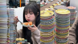 쯔양, 이게 탑이야 접시야…회전 초밥 121접시 먹방 '눈길' [★해시태그]