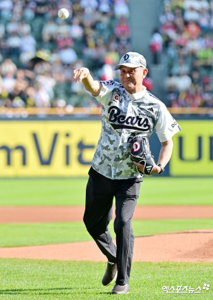 두산 레전드 박철순의 시구[포토]