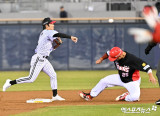 신민재 ‘빠르게 송구’[포토]