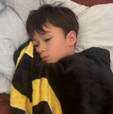 샘해밍턴 아들 윌리엄, 39.7도 고열…풀린 눈+붉어진 얼굴 [★해시태그]