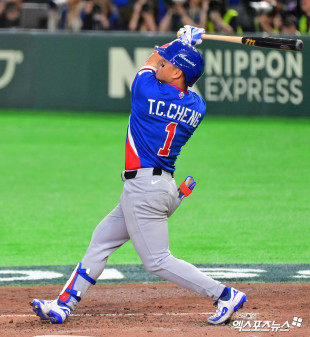 정쭝저 ‘곽빈 상대로 솔로포’[포토]